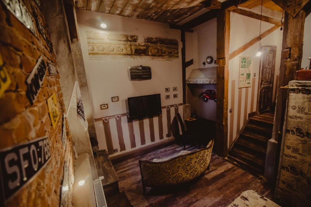 Pokój inspirowany zlotem aut klasycznych "DRYNDA", który odbywał się na terenie parku. Ozdobiony jest róznymi elementami motoryzacji klasycznej