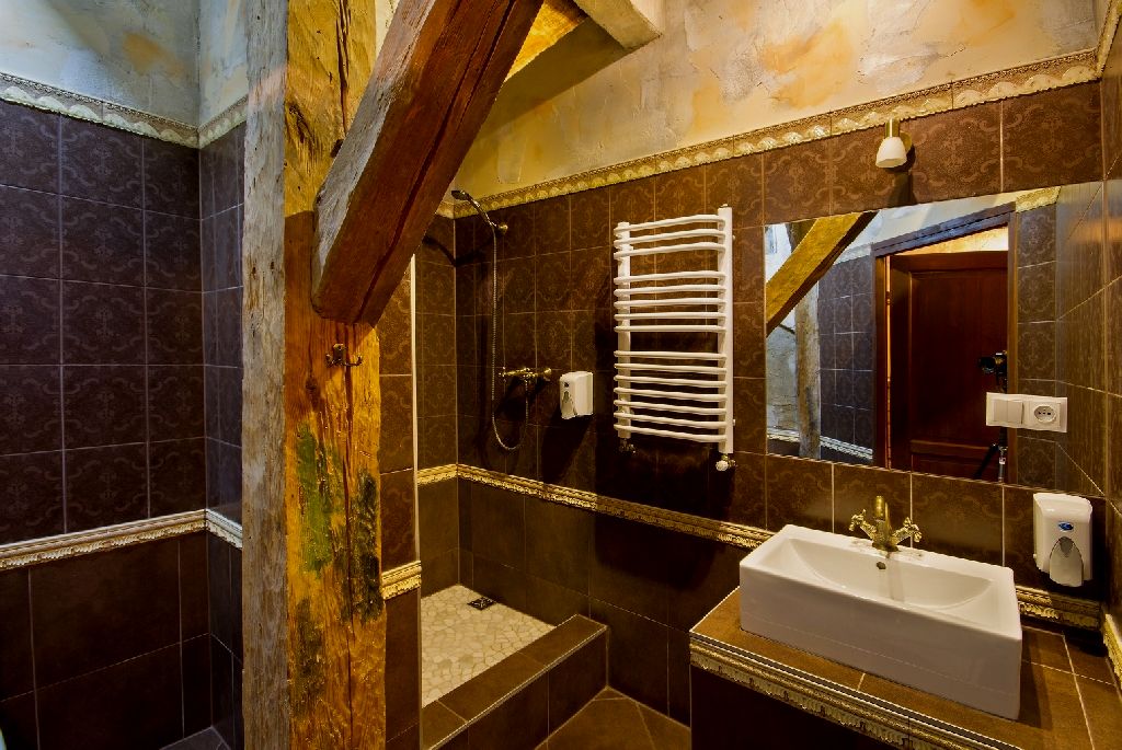 Przyciemniony pokój z nostalgiczną aurą. Urządzony w bordowych barwach tworzy lekko mroczną aurę. Idealny dla myślicieli i marzycieli.